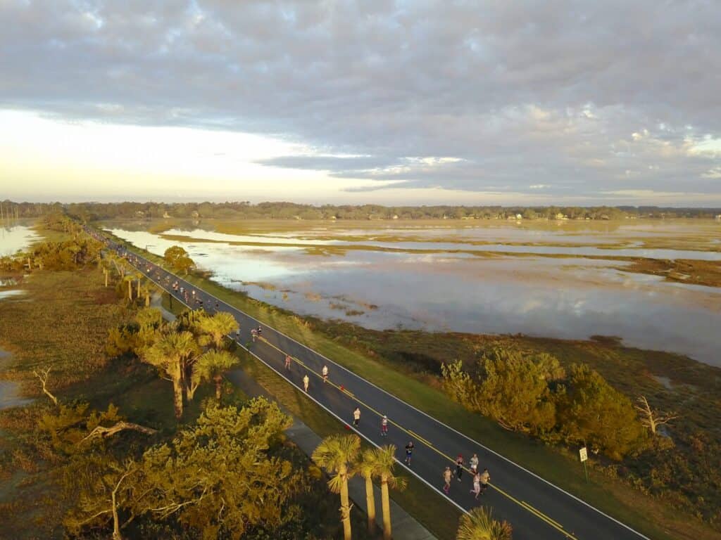 Fall is the best time to run a race in the Southeast โ and Ocean Isle is a real hidden gem to do it at. In this race, youโll run over the bridge that connects Ocean Isle Beach to the mainland and pass stretches with scenic views of the islandโs marshes, the intercoastal waterway, and the oceanfront. Donโt worry โ itโs a full road race (until you want to hit the water for a victory swim).