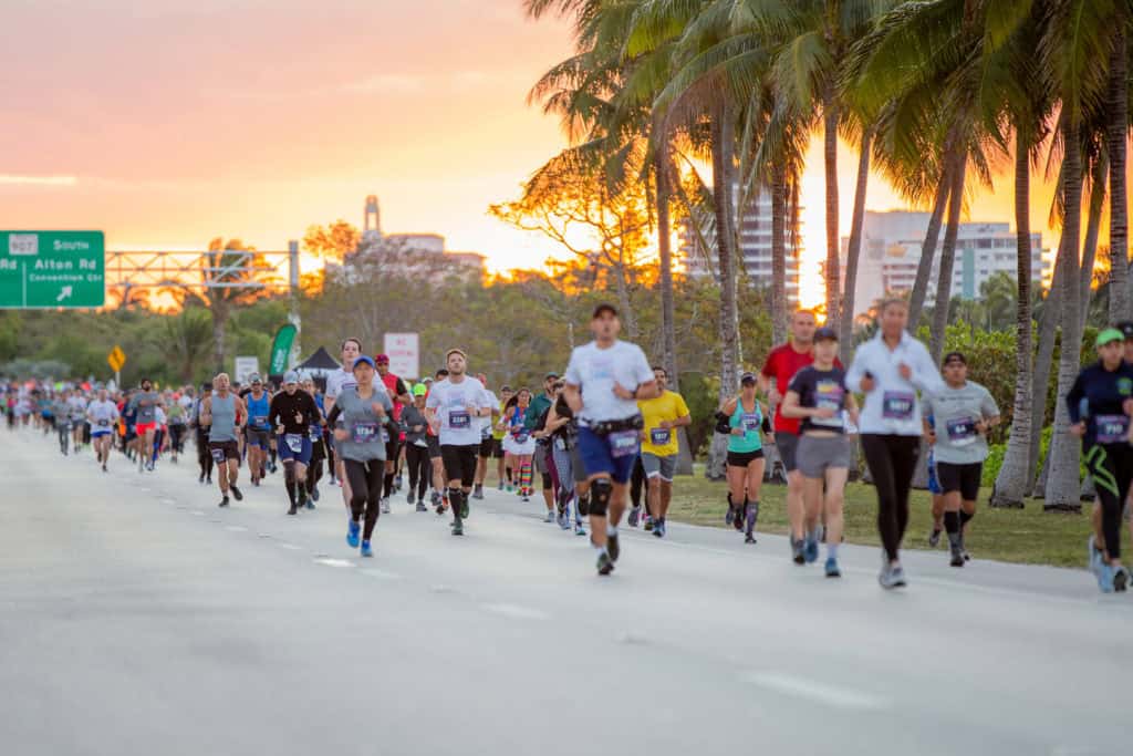 The Miami Beach race offers runners ample views of the ocean waves crashing against the shore and the art and architecture of the city’s world-famous South Beach, from the starting line along Ocean Drive, next to Lummus Park in South Beach.
