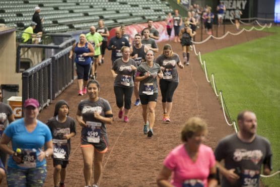 But the race isn’t over until you take a lap around the warning track inside Miller Park, all the way from the 3rd base side to the 1st base side, and past right field, where you’ll exit the ballpark and head into the finish chute.