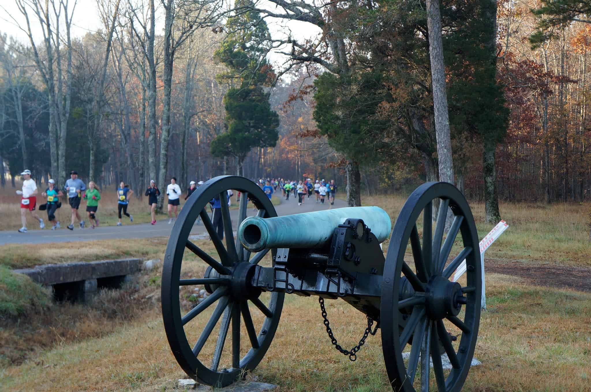 More than 1,000 runners make their way along the paved roads and trails of Georgia’s most historic Civil War battlefield sites each year at the 43rd annual running of Fort Oglethorpe’s Chickamauga Battlefield Marathon, Half Marathon & Junior Marathon, up from a few hundred runners finish the race’s half marathon in earlier years. Both the half marathon and the full marathon share the same starting line and time, at 7:30 AM at the 6th Cavalry Museum near the visitor center entrance on the northern end of Chickamauga & Chattanooga National Military Park. From there, those running the 13.1-mile race follow an out-and-back loop course that winds in a roughly clockwise direction through the park, giving runners ample views of the approximately 1,400 memorials, cannons and monuments that commemorate the Battle of Chickamauga, the bloodiest two-day battle of the Civil War, which claimed the lives of nearly 4,000 Confederate and Union soldiers in September 1863.
