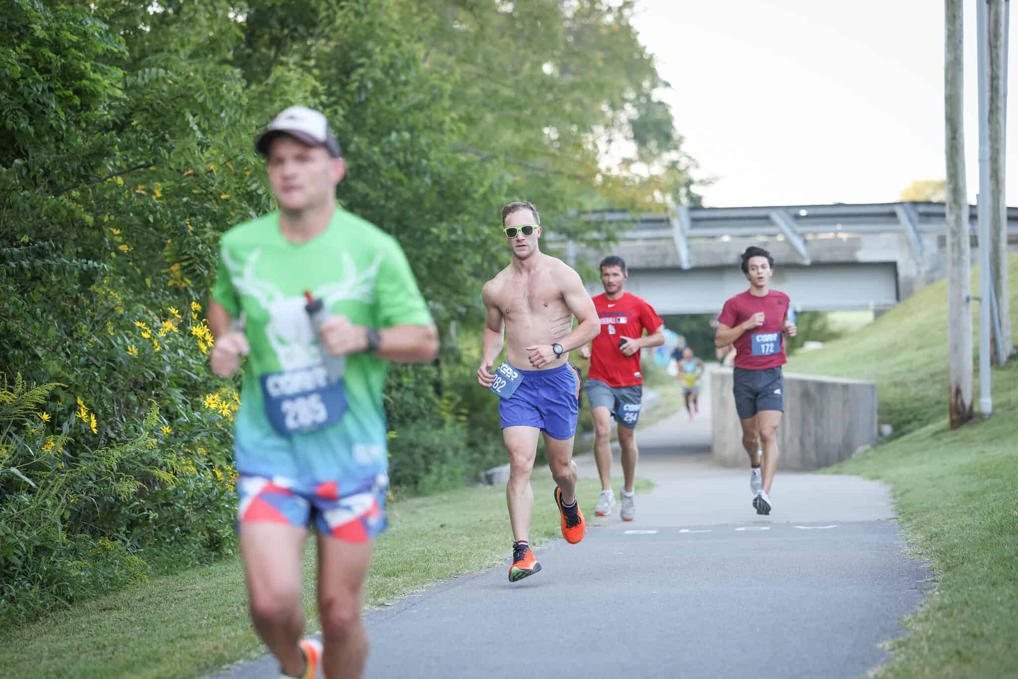 Runners follow an out-and-back course at Cape Girardeau’s City of Roses Half Marathon, which starts and finishes at the Osage Centre in Osage Park, just off North Kingshighway Street.