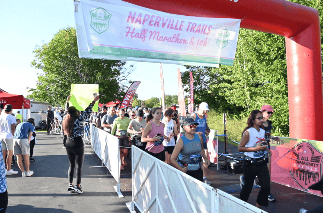 One of series of more than a dozen running events staged throughout the year around the Chicagoland area by All Community Events, the Naperville Trails Half Marathon, on an out-and-back course along the park roads and trails of the Danada County Forest Preserve just north of the city.