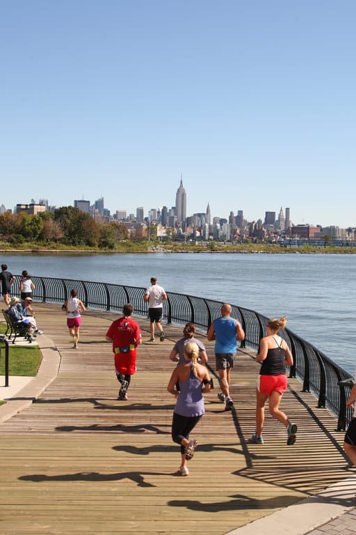 The race’s starting and finish lines are at Newport-on-the-Waterfront Park, part of a 600-acre live-work-play community of high rises, restaurants, commercial buildings, and nightspots on Jersey City’s waterfront, just across the Hudson River from New York.