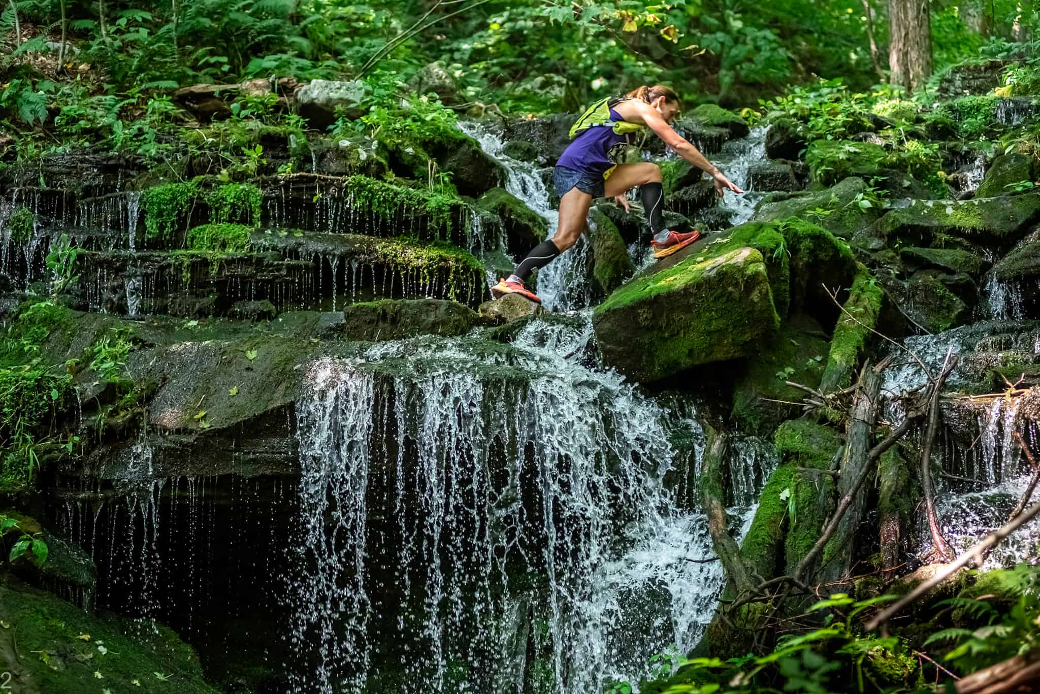 The 10k course includes Lost Porcupine, Code-Red, Tree-odge, Devils Hairpin, Throat Punch Hill, and Soul Sucker Slopes trails. There are two major climbs with nearly 1500 feet of climbing, and there’s one aid station at the base of the first climb at 3.7 miles. The half marathon has over 3500 feet of climbing, featuring sections like Blister Blaster, Teal is Real up Deep Hollow Notch, I’ll Nettle Do This Again, and I Need a Sherpa. There is also a 50k ultramarathon.