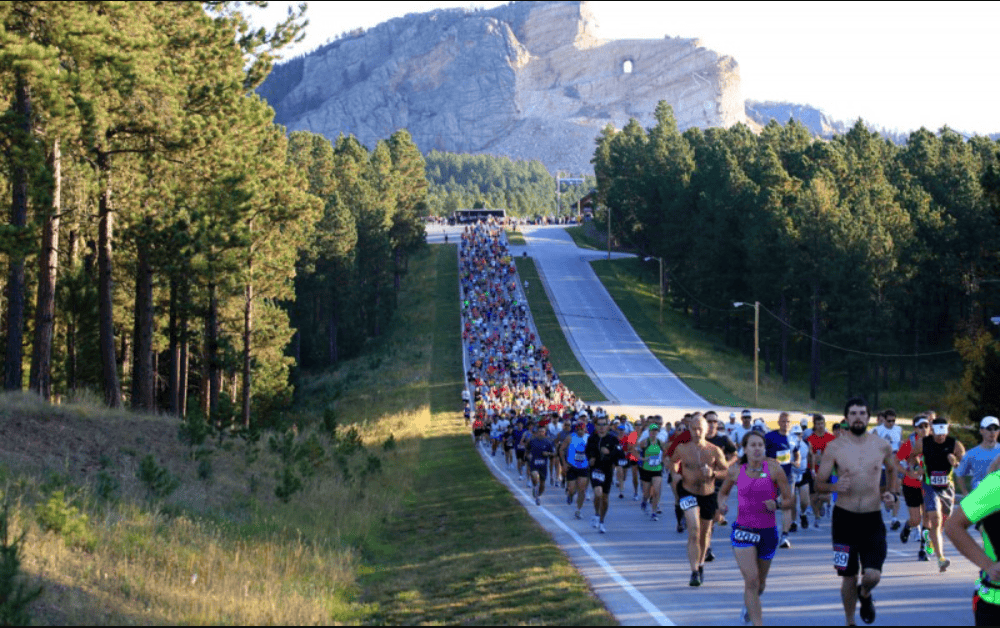 From there, participants follow the course on a brief loop up to the monument and then back again, where they then enter South Dakota’s George S. Mickelson Trail, which they follow for the rest of the half marathon route.