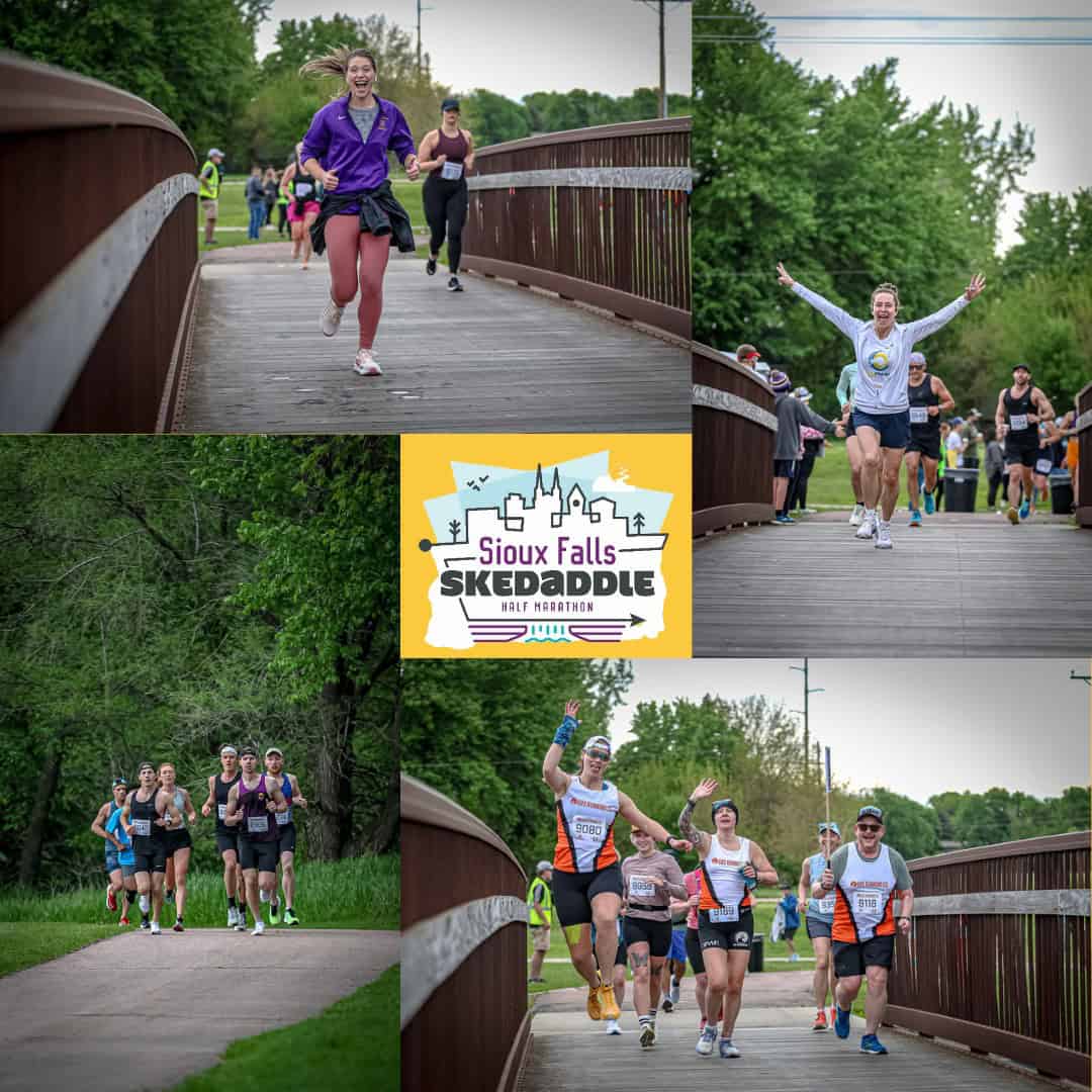 Join us for the 8th annual Sioux Falls Half Marathon: Skedaddle! As the beloved race of South Dakota, brought to you by the 605 Running Company, this half marathon promises a one-of-a-kind running experience. We go above and beyond, offering top-notch swag, fierce competition, a picturesque course, and a sense of camaraderie that’s unique to our local running community. Skedaddle isn’t just a day for us; it’s a whole weekend adventure in the beautiful Sioux Falls, South Dakota.