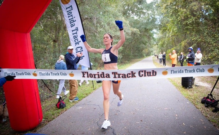 More than 200 runners cross the finish line each year at Gainesville’s Tom Walker Memorial Half Marathon, organized by the Florida Track Club on an out-and-back run along the Gainesville-Hawthorne State Trail, whose wide paved pathways stretch some 16 miles from Boulware Springs Park into the nearby Paynes Prairie Preserve State Park.