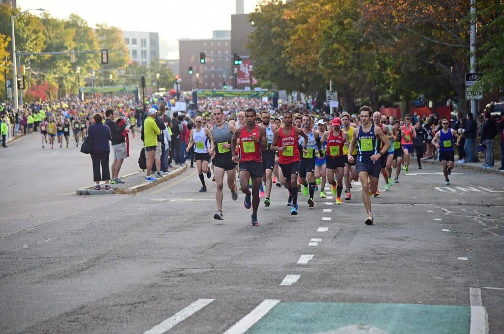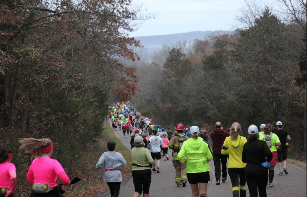 There is a small amount of elevation gain on the final miles of the course, but the first nine miles are flat, flat, flat! You’ll be encouraged by scores of spectators with cowbells as runners will fly through this loop course.